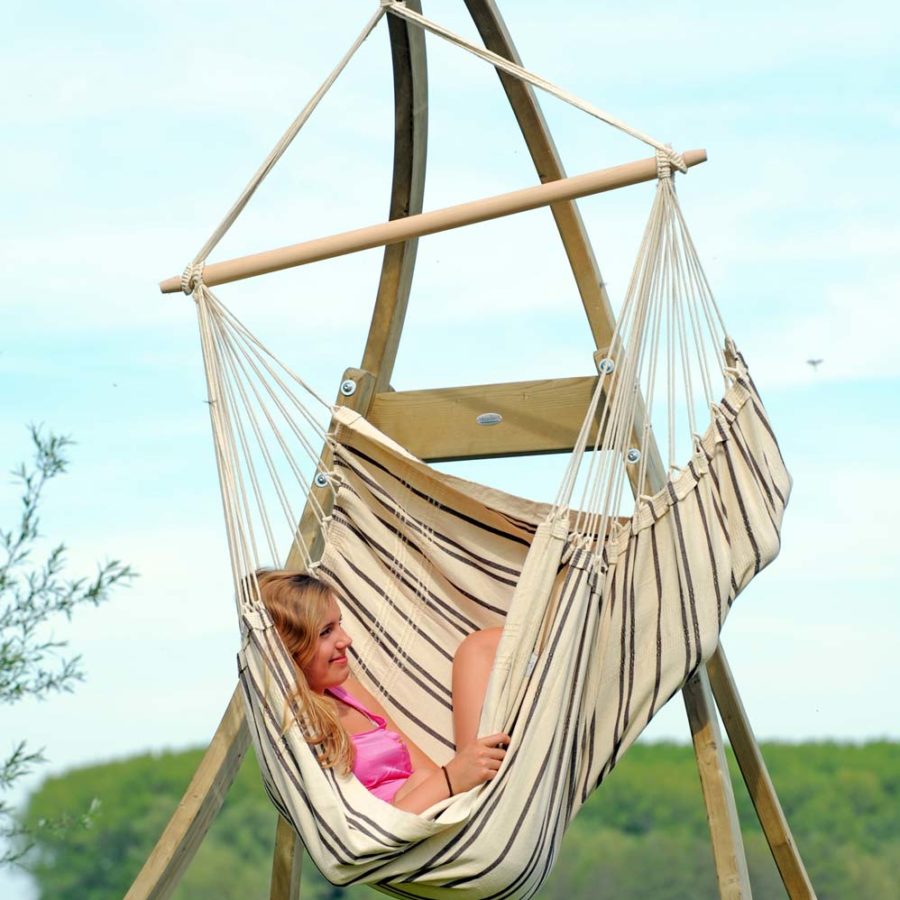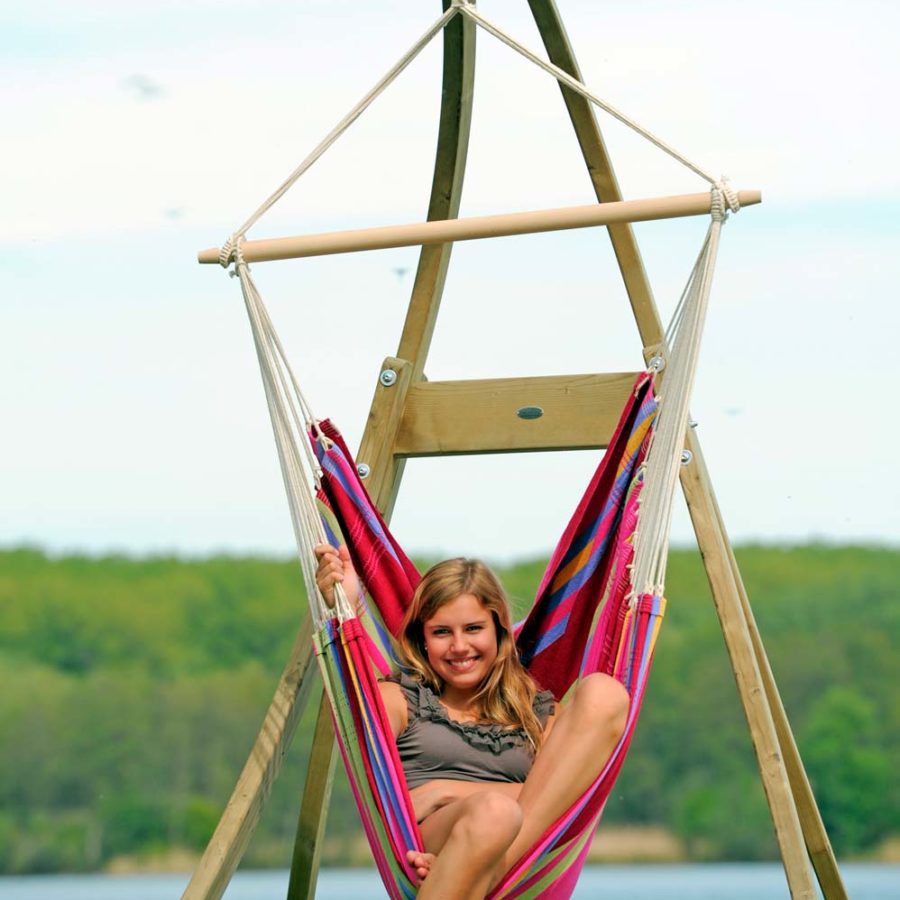 Atlas ist das Flexibelste aller AMAZONAS Hängesesselgestelle aus Holz, denn es ist kombinierbar mit allen Hängesesselgrößen.