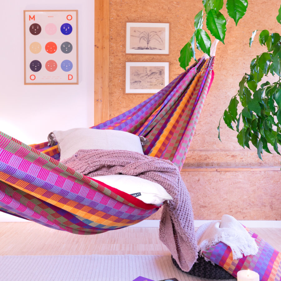 Verarbeitung: Diese typisch Kolumbianische Hängematte ist in besonderer Farbharmonie, mit wunderschönem Webmuster