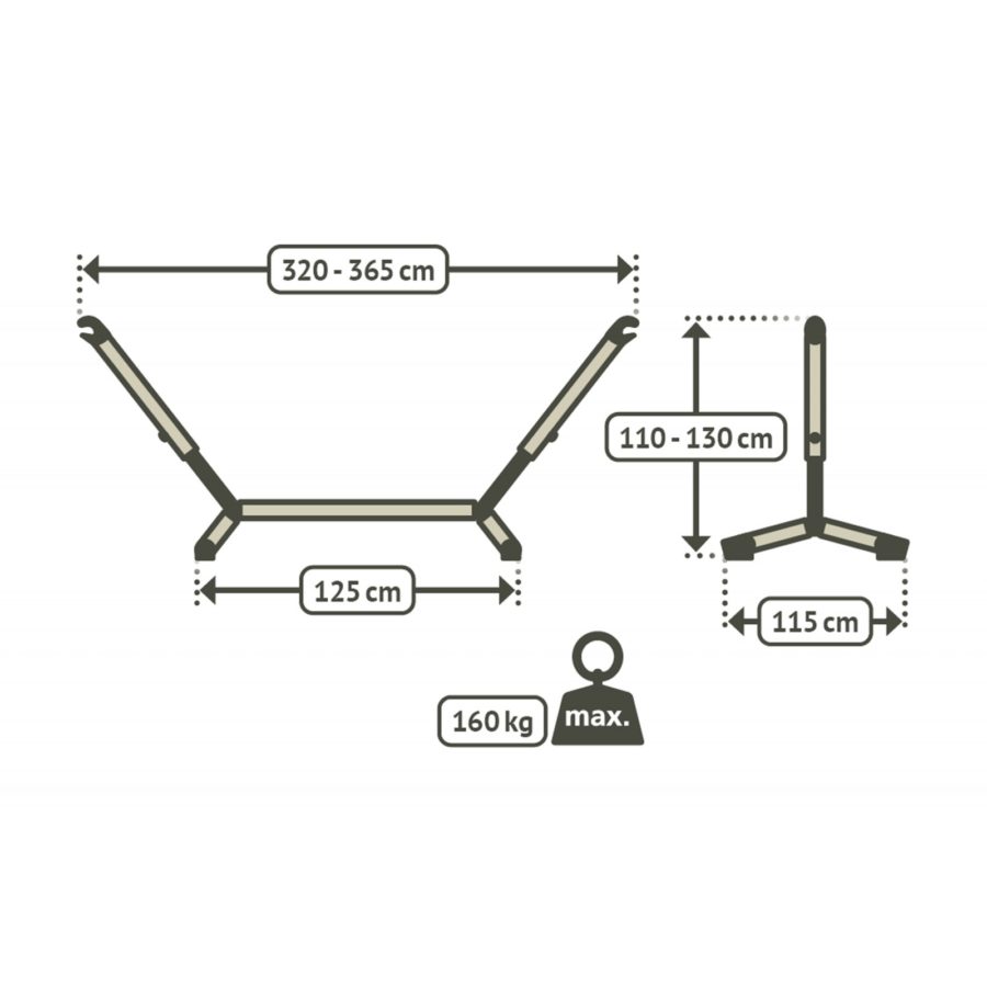 Längen-/Höhenverstellbar von 320 – 365 cm-/110 – 130 cm.